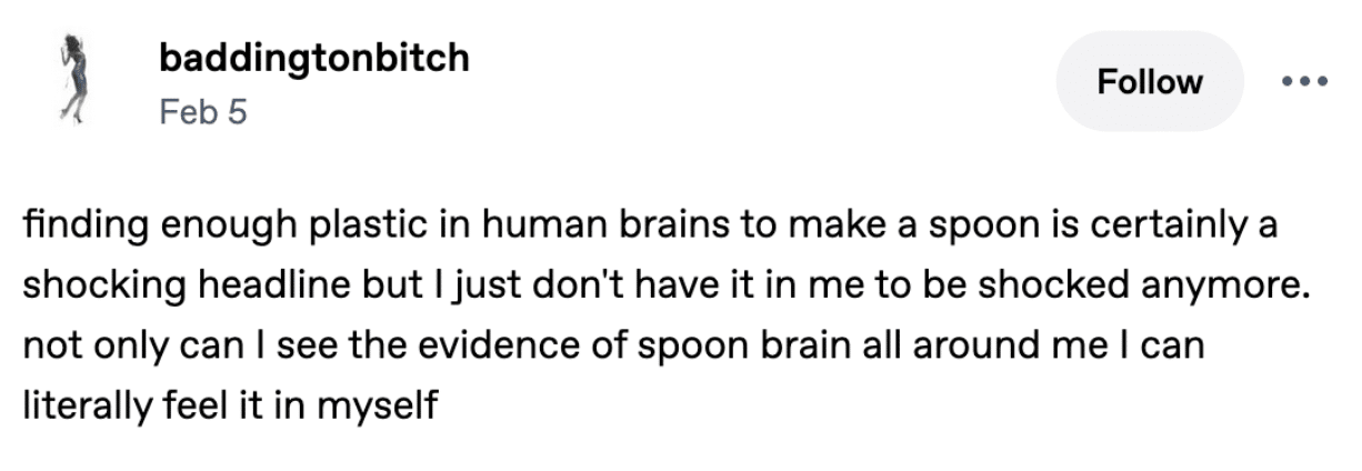 I know that’s kind of a bummer note to end on, but if you want, you can take solace in the fact that despite the worldwide spoon brain epidemic, we, as a people, are making funnier posts than ever. And that’s what really matters.