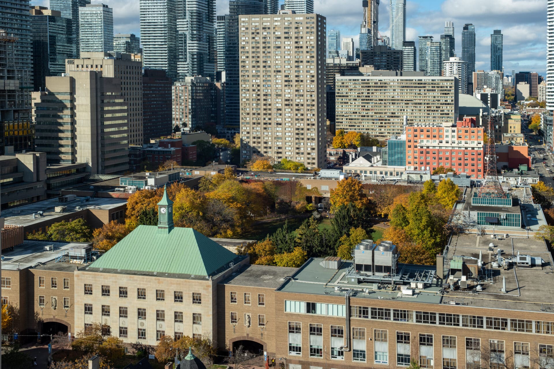 The Vari Engineering building, low to the ground and extending down almost to the entire block, provides some of the lecture space and research facilities for TMU’s engineering students. The TMU Faculty of Engineering is one of the largest in Canada, and its aerospace engineering is especially popular, with more than 1000 students studying in that specialty.