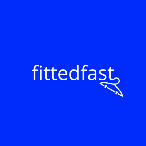 Fittedfast lettering with illustrated clothes hanger hanging off the last letter.