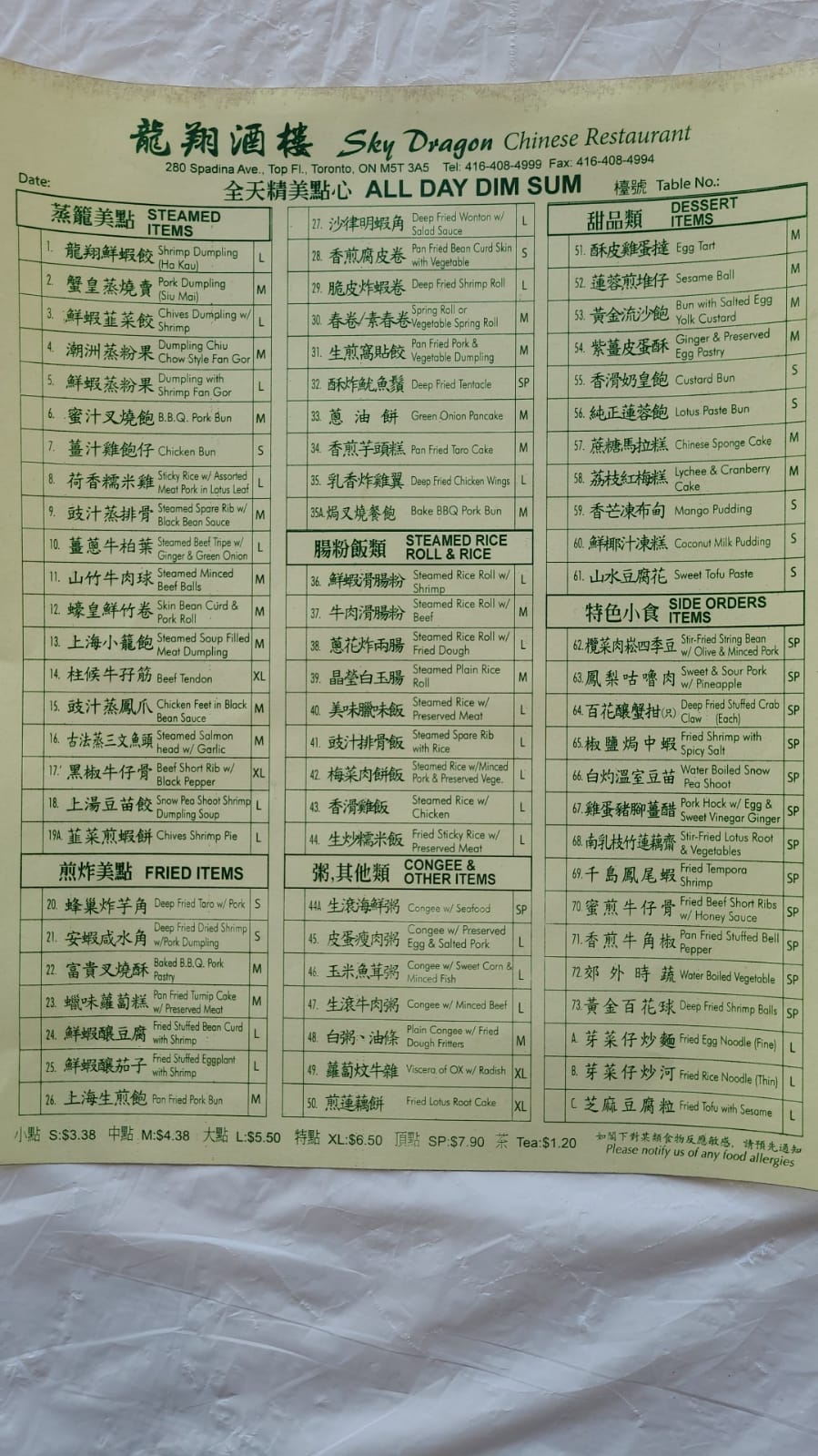 “Cart service can be traced back to Hong Kong, formerly China, where it first started. The traditional dim sum experience is like that,” explained Duck Cheong, who is a customer of Sky Dragon and retired restaurant owner and businessman.*