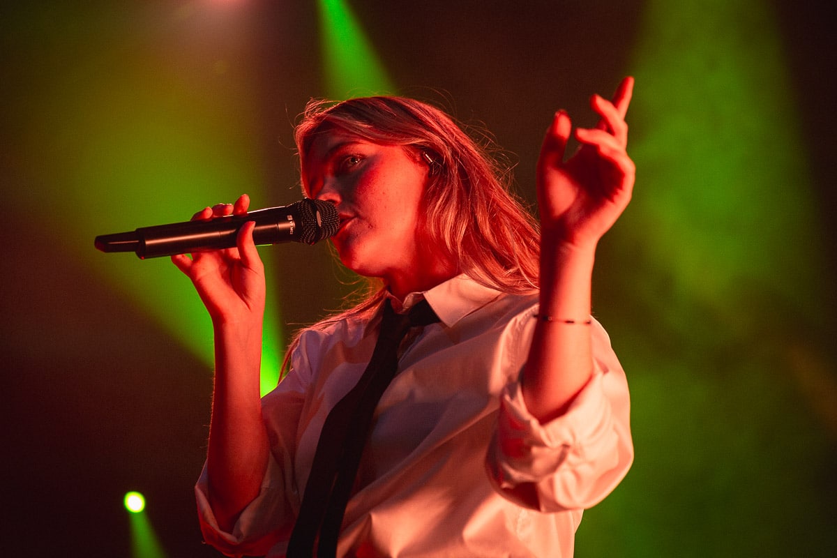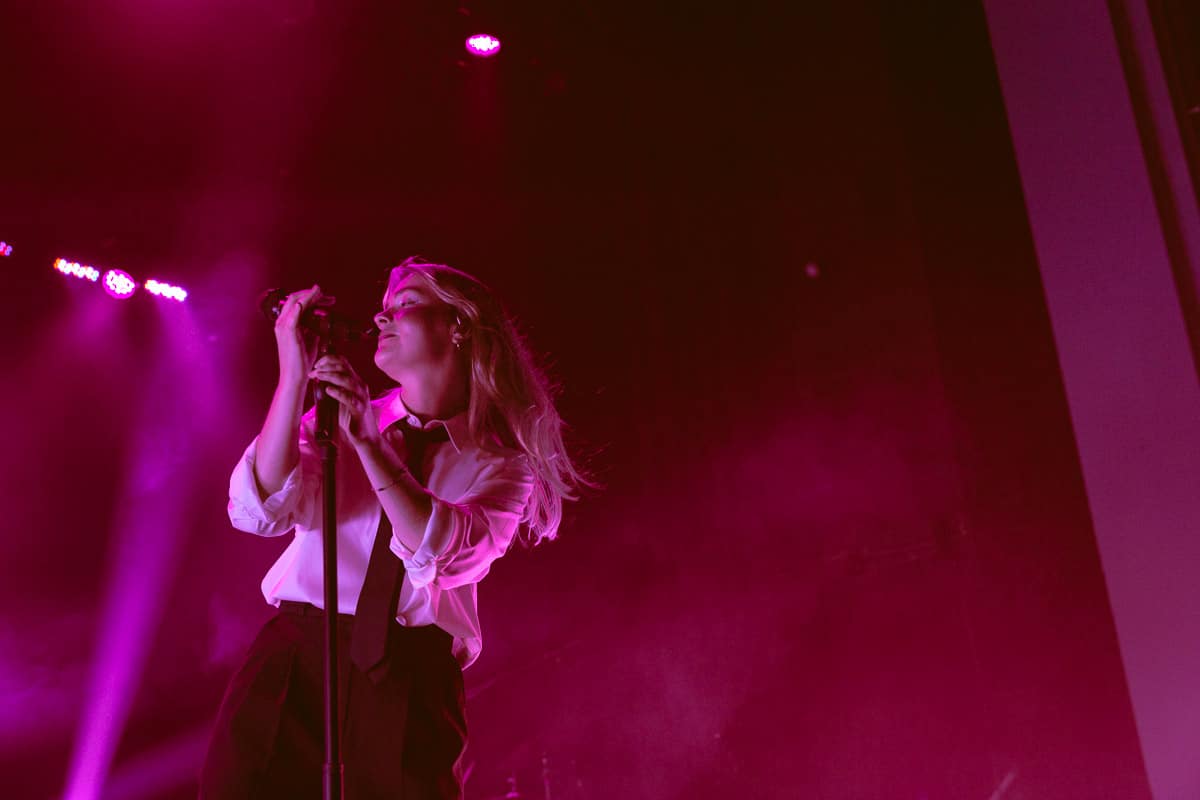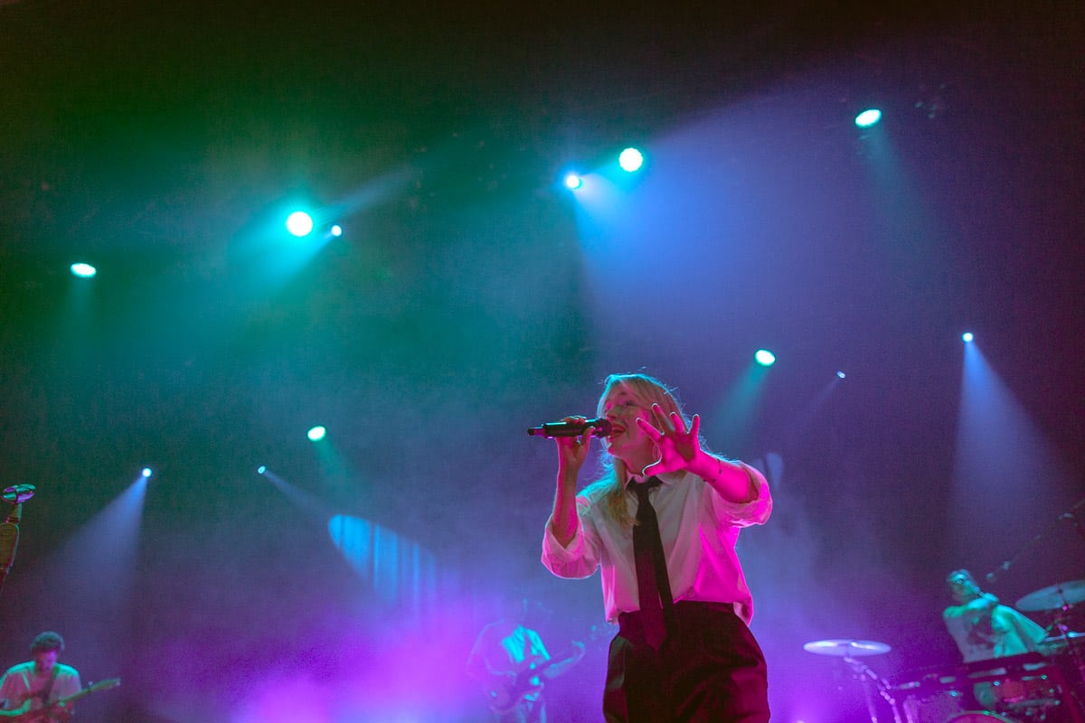 Donning a timeless white blouse and black tie, the blonde songstress led her band through a dreamy swirl of tracks from their new self-titled album and 2020’s The Sun and Her Scorch. Only the poignant “Joshua” emerged from their 2018 debut Baby Teeth, which meant that the ambient chill of “Stars and Moons” unfortunately did not shine that night.