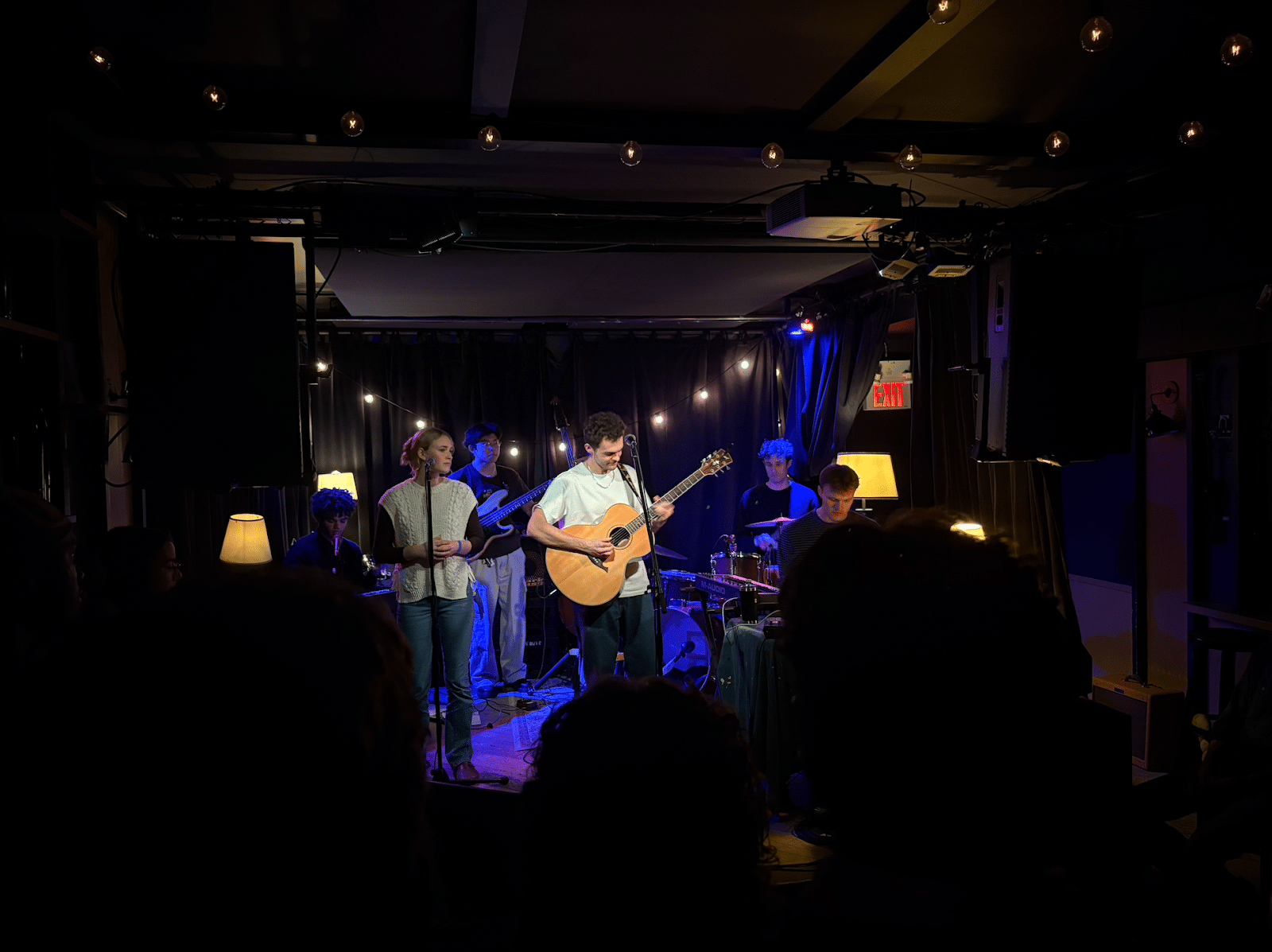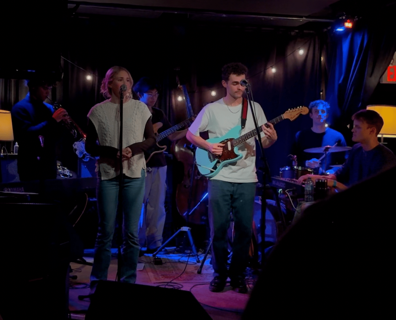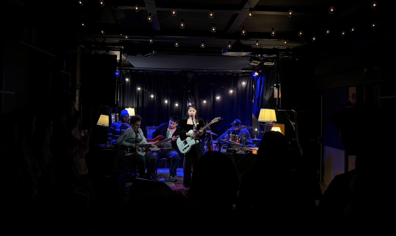 The stage was set up like a living room, with a rug covering the stage floor, and several lamps lighting up the instruments. This helped to keep up the warm, inviting atmosphere, and the visuals accompanied the music perfectly.