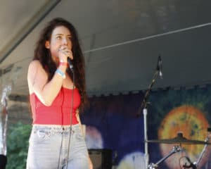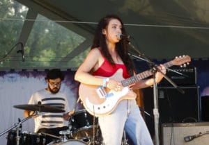 The music was felt among those in attendance, though you couldn’t really tell peering over the crowd. Considering the time of day, there was a noticeable distance between performer and audience – the sun was still out and this is usual in earlier sets, but the audience eased into it over time. This easing into was propelled forward by the heavy, tight rhythms of drummer Edan Scime, where the crowd proceeded to latch onto the classic head-nod. Even more, it was the slightly odd and serious nature of the dance moves delivered by Bria, which might have gotten the people more engaged in a semblance of movement, enough for a sway from side to side, building on the aforementioned head nod. As well, her stage movement could be described as awkward in a way, yet endearing in execution, for the music wasn’t something that you would normally dance to and it sent permission for things to get a little loose and weird.