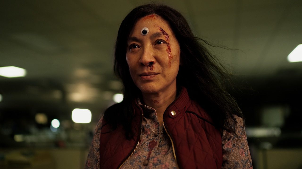 The film’s narrative centers around a disgruntled laundromat worker named Evelyn Wang and her struggling family, who are all under intense pressure due to the IRS auditing their business. Additionally, her unhappy husband Waymond is attempting to file for their divorce, her overbearing father Gong Gong has arrived from China to see her, and their daughter Joy (Stephanie Hsu) has been trying to get Evelyn to accept her girlfriend Becky (Tailie Medel). However, a fateful meeting with IRS inspector Deirdre Beaubeirdra (Jamie Lee Curtis) culminates in Evelyn’s sudden encounter with a variant of her husband hailing from the “Alphaverse”, home to a military group using “verse-jumping” technology to travel to different timelines. Their ultimate goal is to prevent a god-like being named “Jobu Tupaki” from using a black hole-like device known as the “everything bagel” to potentially destroy the entire multiverse.