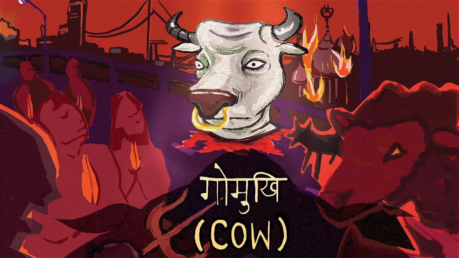 This is an inspired choice, considering a cow is sacred in Hinduism and also the frequent flashpoint of religious conflict.