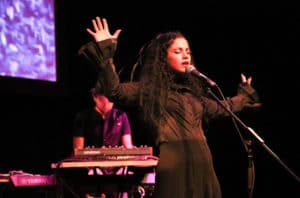 The festival closed with a series of international artists, each of them critically lauded and feminist icons in their own right. Madame Gandhi, the ex-drummer for M.I.A., free-bleeding marathon runner, and mind behind “The Future is Female”, showed her technical prowess as a percussionist and performer. Her energy was bountiful and her words were motivational, although her set was cut short. Grouper had the audience sitting and laying on the ground before she even started, her ambient and atmospheric trance leaving everyone stunned, and unfortunately immobile at the tail end of the festival. As beautiful as the music was, with dedicated fans purchasing festival tickets just to see the one act, the decision to have Grouper second-last put a serious damper on the evening, as most festival goers had gone before Emel Mathlouthi could grace the stage. Mathlouthi is a less familiar face, which is a shame because she is a stunning model of feminism and activism in music, her music being banned in Tunisia as she revolted against dictatorship and censorship. The performance was compelling, singing in Arabic with dark and arresting electronics and percussion.