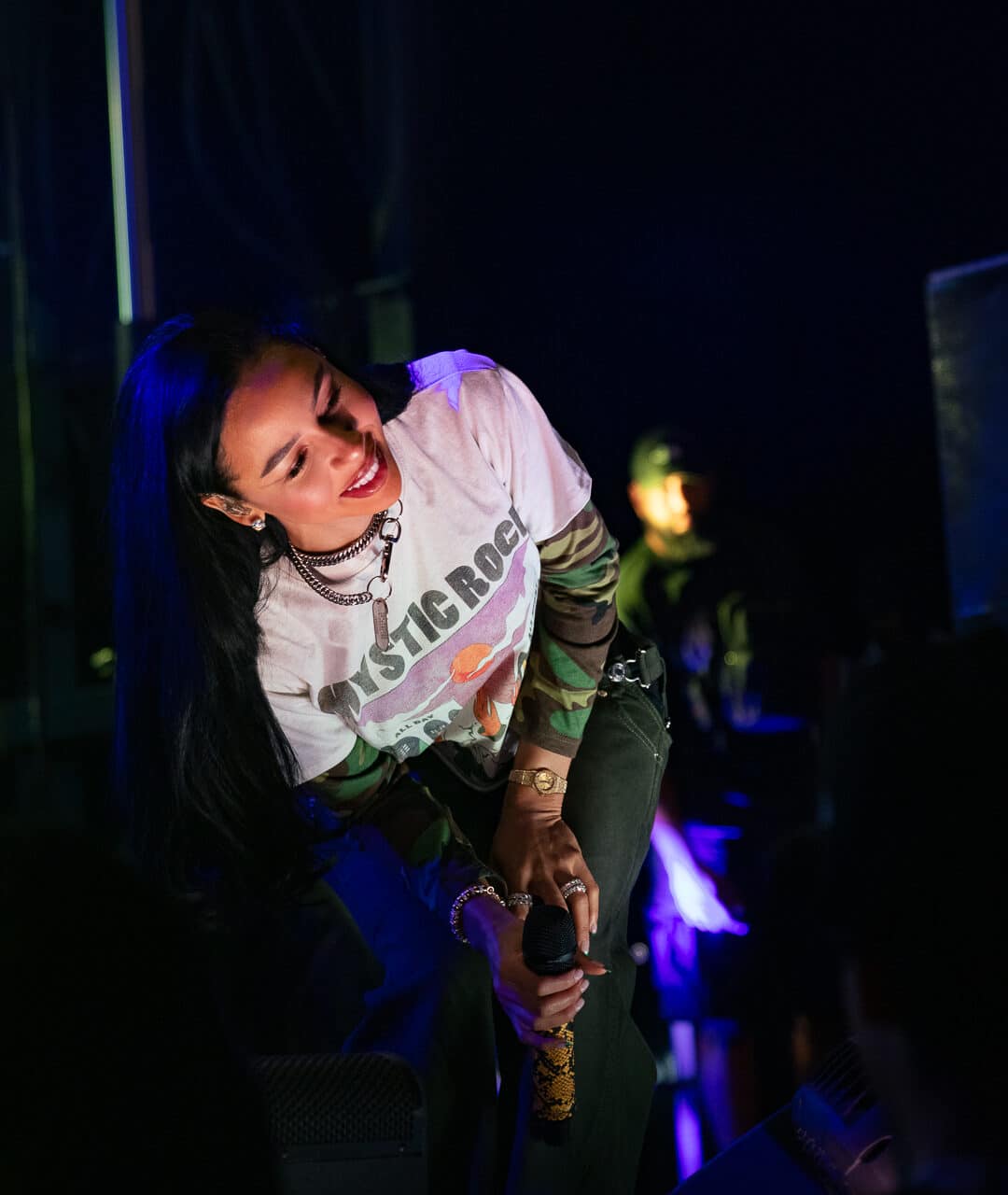Between the opening and headliner acts, DJ Baby Vaye kept the crowd dancing while Kiana Ledé prepared to take the stage. Kiana Ledé put a lot of thought into her performance; I even saw a video she posted on Instagram demonstrating the work she’s putting in, and it paid off. Her set was visually creative and dynamic, with such an effortless stage presence that made it feel like the stage was her home and she belonged there. She knew how to alter through the different personas of her performance, transitioning smoothly from rockstar poses to intimate moments, while connecting authentically with her fans and showcasing her impressive vocal range.