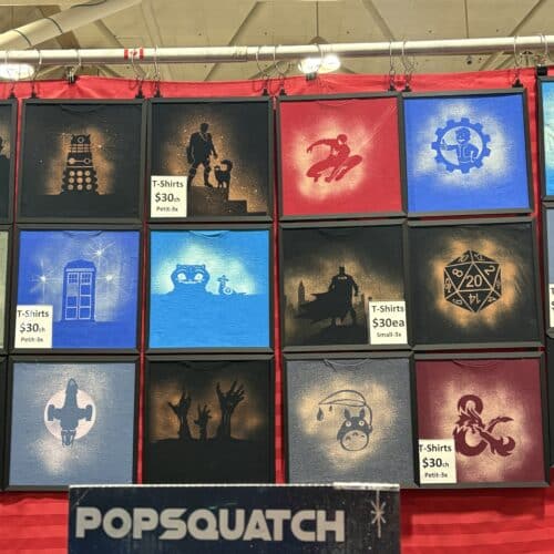 Julie Ewing is part of the company called Popsquatch Designs, based out of Ottawa. They started out as a jewelry company and now sell bleach-dyed t-shirts of different fandoms, including Ghostbusters and Supernatural. A memorable celebrity encounter for Ewing was meeting Emily Swallow, known for her roles in Supernatural and The Mandalorian. Swallow got a custom-made shirt with a scene of her Mandalorian character, The Armorer, in the bathtub.